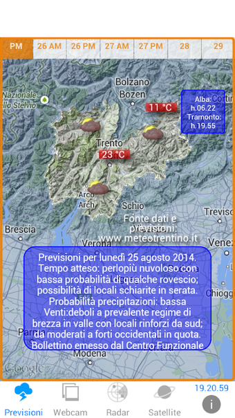 METEO TRENTINO is een handige applicatie voor Android-gebruikers die gedetailleerde weersinformatie biedt voor de regio Trentino. Met deze gratis app kunnen gebruikers eenvoudig toegang krijgen tot weersvoorspellingen tot vijf dagen vooruit, die zijn gepubliceerd door het Functioneel Centrum voor Civiele Bescherming van de Autonome Provincie Trento. Daarnaast biedt de app een radar- en satellietkaart, waardoor gebruikers een beter inzicht krijgen in de actuele weersomstandigheden.